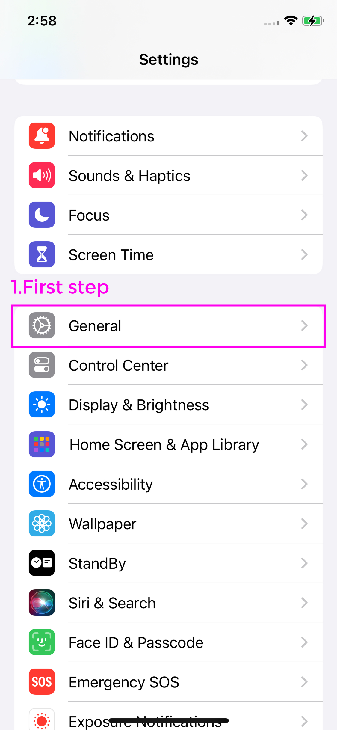 "Step 1: Open the "Settings" app.
