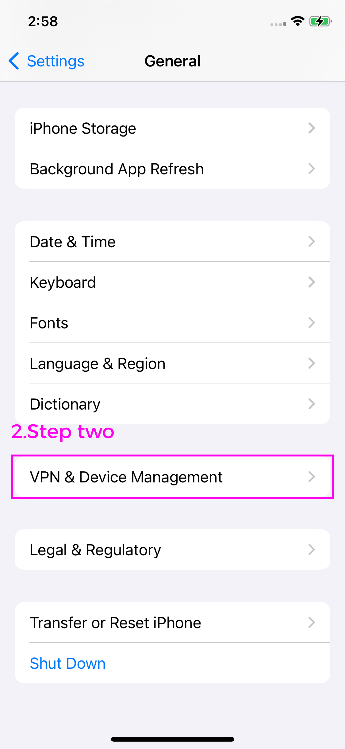 1.Once the signing is complete, download and install the game. Then, on your iPhone, go to Settings > General > VPN & Device Management.