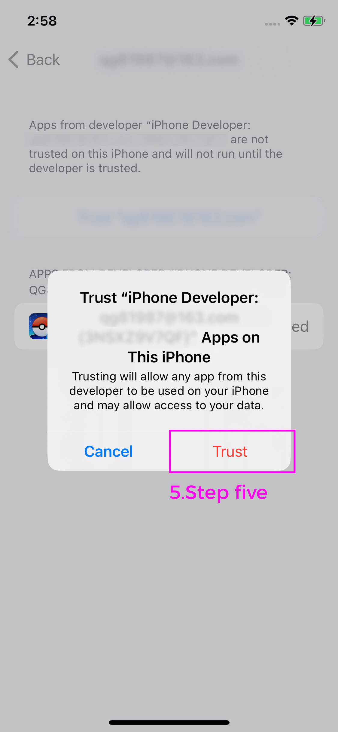 ③Confirm that you have selected "Trust" on the pop-up and entered the lock screen password.